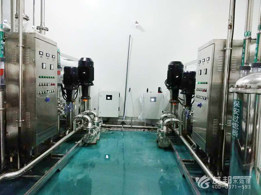3、采用高效反渗透加EDI方式,其流程如下(最新工艺性价比最高):自来水→电动阀→多介质过滤器→活性炭过滤器→软化水器→中间水箱→低压泵→PH值调节系统→高效混合器→精密过滤器→高效反渗透→中间水箱→EDI水泵→EDI系统→微孔过滤器→用水点