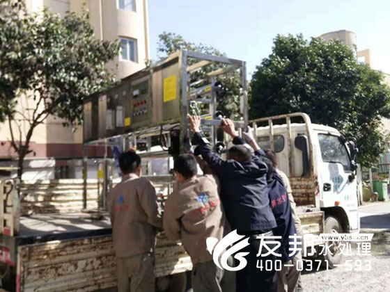 郑州友邦正在装车的是这套每小时出水2吨的工业纯净水设备,发往开封某电器有限公司。