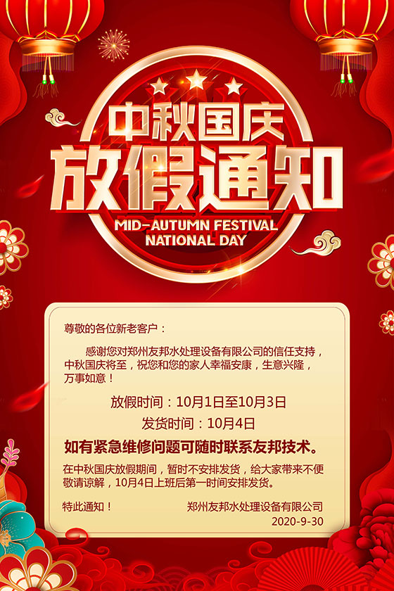 放假时间:10月1日至10月3日,发货时间:10月4日,如有紧急维修问题可随时联系友邦技术。在中秋国庆放假期间,暂时不安排发货,给大家带来不便敬请谅解,10月4日上班后第一时间安排发货。谢谢大家对友邦的大力支持!联系电话:0371-53768300