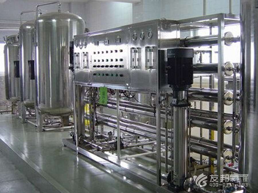 2、预处理→反渗透→中间水箱→水泵→EDI装置→纯化水箱→纯水泵→紫外线杀菌器→抛光混床→0.2或0.5μm精密过滤器→用水对象(≥18MΩ.CM)(最新工艺)。