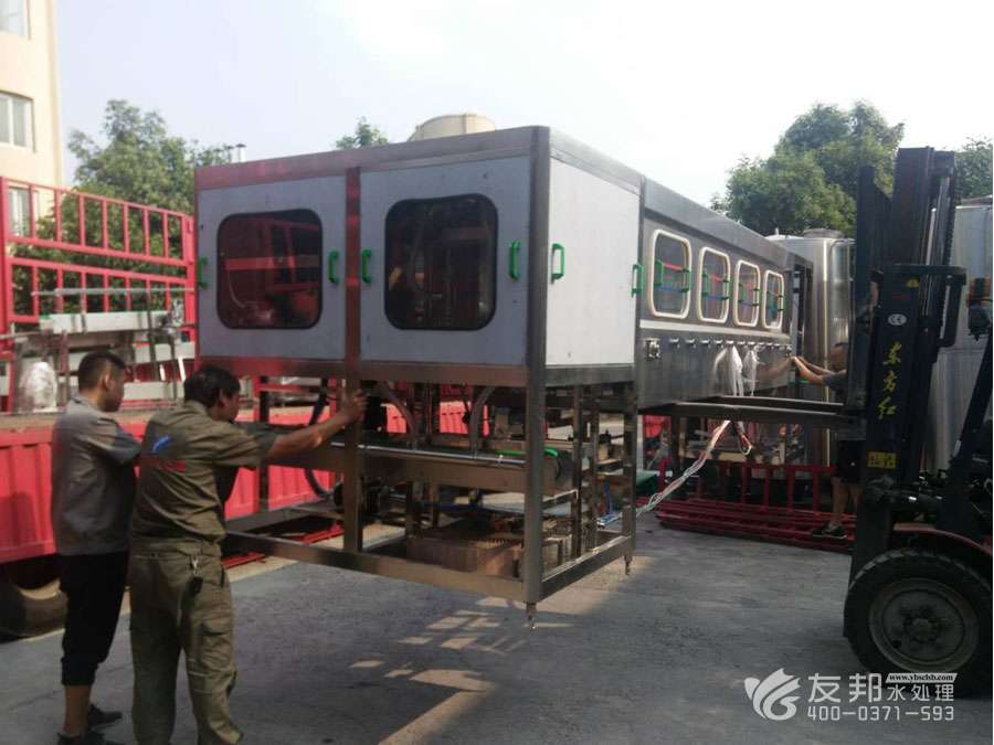 用于3&5加仑桶封装纯净水或矿泉水,集冲洗、灌装、封盖于一体河南友邦水处理生产的桶装矿泉水生产线,是根据多年水厂设备生产、水厂运行经验的总结。本系统是灌装矿泉水的专用设备,也可用于蒸馏水、纯净水和其他无压、常温液体的灌装;是大中型水厂建厂不可或缺的保障。