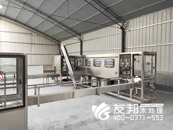 YB-TZS-001桶装矿泉水生产线分为八大部分:自动拔盖部分、自动外刷桶部分、自动上瓶传动部分、自动洗瓶消毒部分、自动灌装部分、自动理盖套盖压盖部分、灯检部分、自动热缩成品传动部分。
